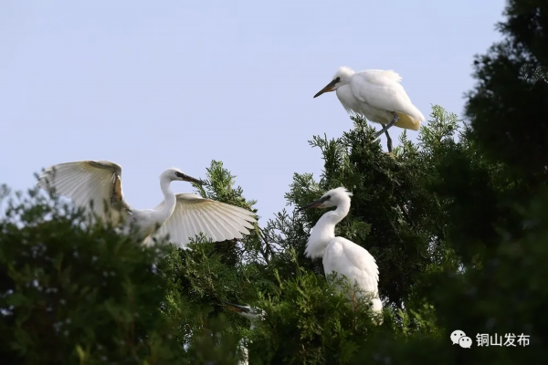 随着铜山生态环境的不断改善,湿地生态资源愈发丰富,自然环境优美,正是各种鸟类栖息的完美之选。瞧!在张集镇伴山村南部玫瑰山和北部水稻育苗田,上百只白鹭或优雅地盘旋在蓝天下,或惬意地休憩于树梢之上,与优美的生态环境相映成趣。
