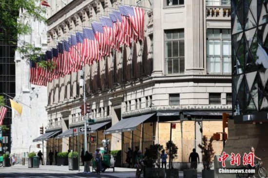 当地时间6月8日,纽约五大道百货大楼仍然紧闭门户。中新社记者 廖攀 摄