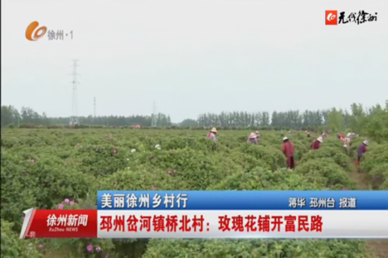 走进邳州岔河镇桥北村千亩玫瑰园,鼻尖萦绕的都是玫瑰花的甜蜜气息。工人们穿梭花海,采摘花蕾。到了采花期,村民们来玫瑰园打工,一个花期每人能挣二千多元。