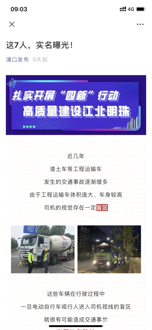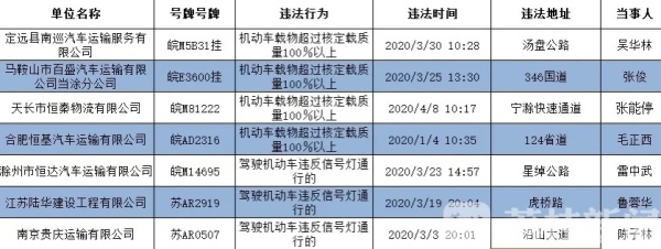 同时,司机的违法行为将被在浦口发布等官方平台曝光。浦口警方将不定期向社会发布工程运输车故意遮挡号牌、闯红灯、闯禁区、超速超限超载等严重违法行为。首批曝光的共有7人和所属企业。警方表示,同时对单位曝光,是在对驾驶员起到震慑作用的同时,让企业引起对安全生产的重视。