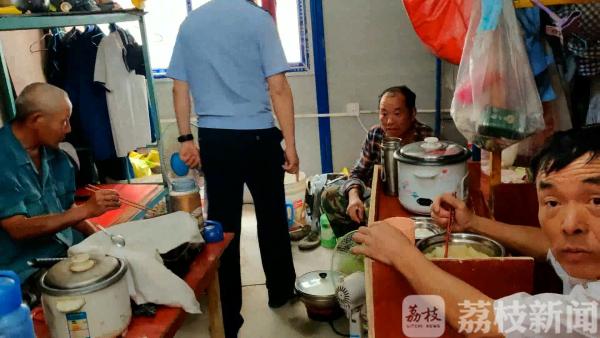 工棚里工人居住环境的安全也是安全生产重要的环节,今天上午,浦口警方联合消防部门对几家企业的工棚进行了检查。警方发现,工棚存在着电线私拉乱接,用气不规范的情况。警方当场下达整改令,要求企业15天内落实整改。