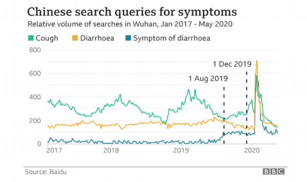 哈佛论文的主要作者Benjamin Rader告诉BBC,“选择‘腹泻’这个搜索词,是因为它与新冠肺炎确诊病例的匹配度最高,所以被建议作为与症状相关的搜索词”。但BBC介绍了百度公司认为搜索词并不准确的澄清。