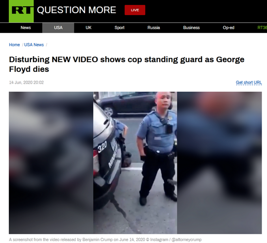 RT称,与最初的视频不同,新视频的焦点则放在了杜滔身上,当旁观者请求为弗洛伊德提供帮助时,杜滔仍然面无表情。