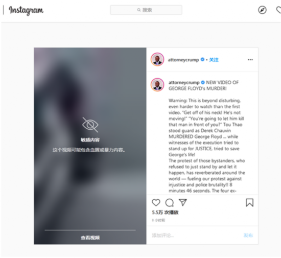 值得注意的是,在Ins上发布的这段新视频不会自动播放,平台给出提醒“视频可能包含血腥或暴力内容”。