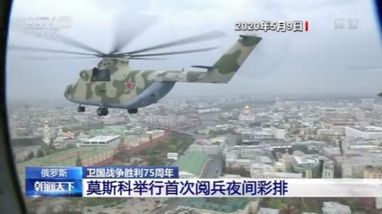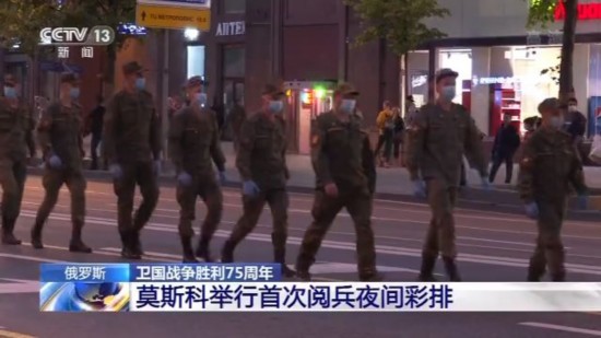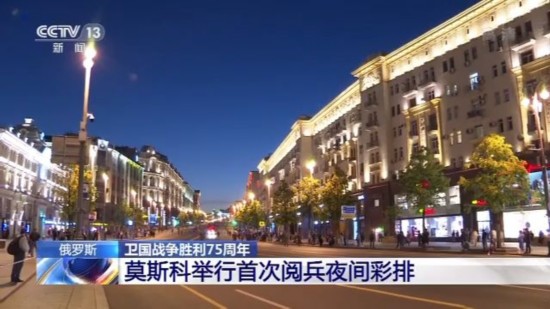 总台记者 顾鑫:当地时间14日21点起,莫斯科市中心著名的特维尔大街开始交通管制,纪念卫国战争胜利75周年阅兵首次夜间彩排在这里举行。