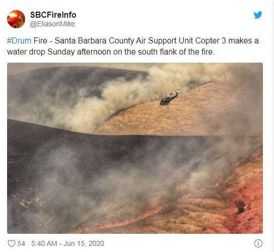 当地消防局出动直升机灭火。图片来源:圣塔芭芭拉消防局社交媒体截图。