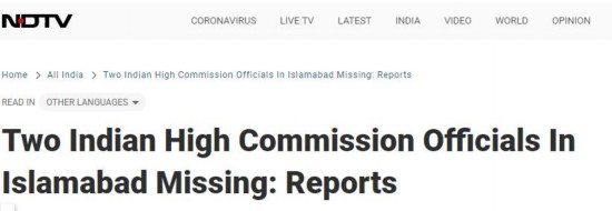 《今日印度》消息称,“失踪”的两名官员此前在伊斯兰堡执行任务,但他们没能抵达目的地就“失踪”了。