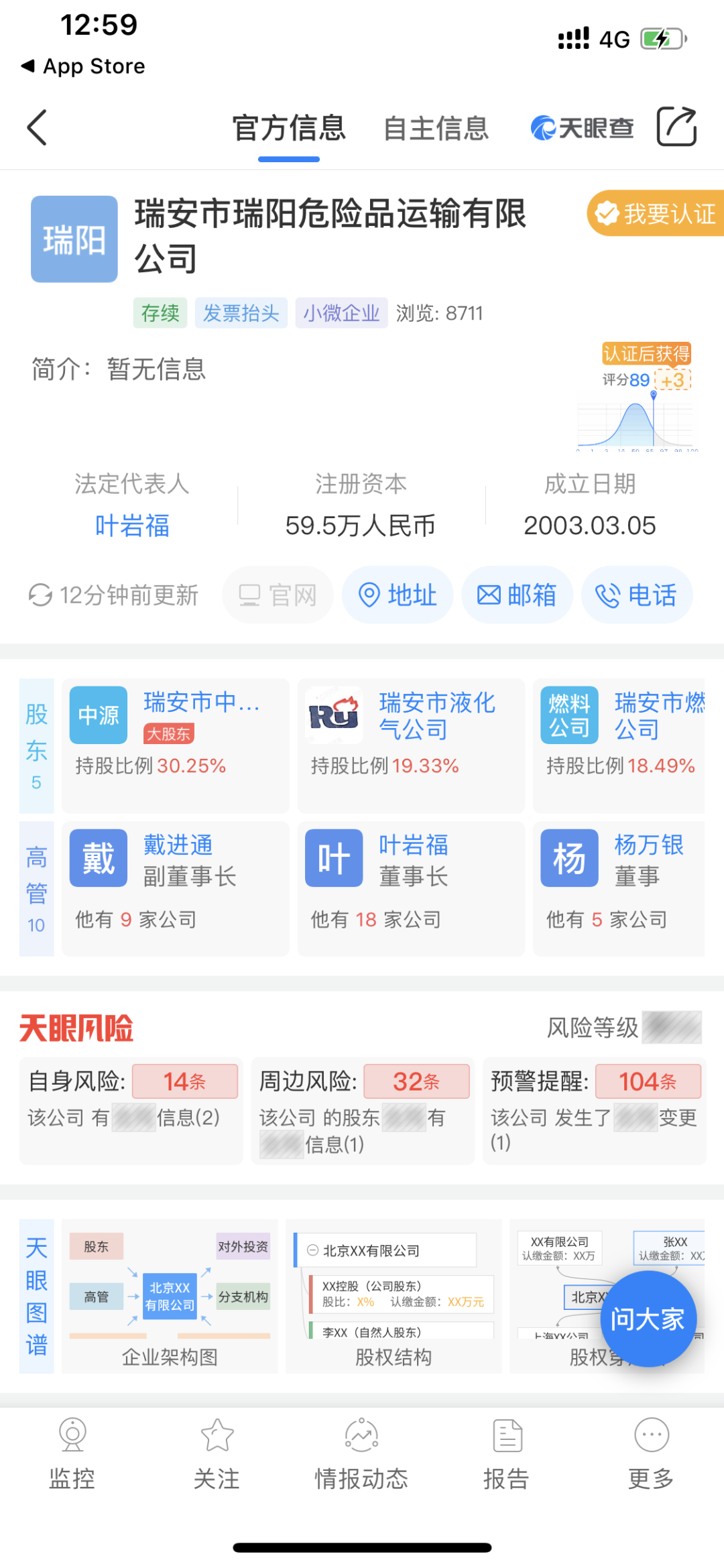 截至2020年6月15日7时许,浙江温岭槽罐车爆炸事故已造成20人死亡。据记者了解,此次爆炸事故中涉事的槽罐车属于瑞安市瑞阳危险品运输有限公司,该公司成立于2003年3月5日。从2016年至2018年,瑞安市瑞阳危险品运输有限公司曾被温州市和瑞安市道路运输管理局处罚10次,合计罚款金额14100元。其中4次的处罚原因显示为“未按规定的周期和频次进行车辆综合性能检测和技术等级评定”,2次因“未按规定实施安全生产管理制度”被处罚,2次因“未按规定的周期和频次进行车辆综合性能检测和技术等级评定”等。此外,该公司从2014年至2019年,涉及4起机动车交通事故责任纠纷案件。