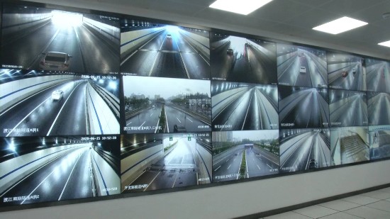 记者在南部快速通道中控室监控大屏上看到,虽然室外大雨如注,但各个隧道内却没有积水,车辆通行一切正常。