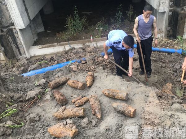 至6月12号,总共成功清理出炮弹弹体82枚,确认为战争时期遗留的榴弹弹头,大部分弹体长约45厘米,直径约为12厘米,重20多公斤,外形保存完好,内部情况不明,有些引信外露,具有较大的危险性。目前,这82枚废旧炮弹已被警方进行了集中销毁。