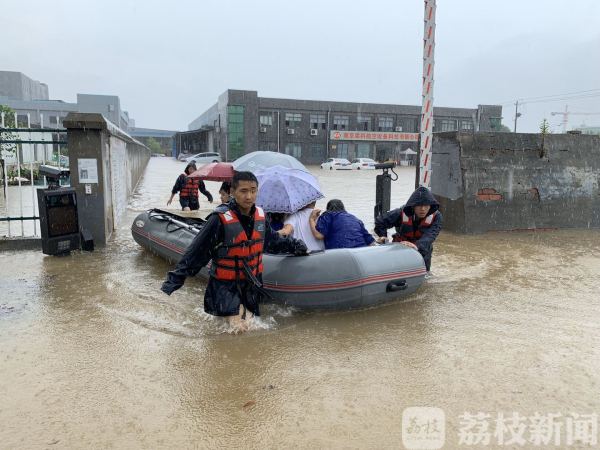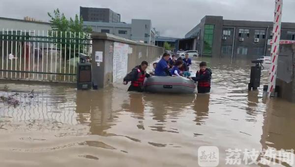 今天中午11点半左右,南京市溧水区栖凤路消防站接到报警称,溧水区某单位的办公大楼院里积水严重,有多人被困在办公楼无法出行,救援人员到场后发现,现场积水深约一米,立即找来了橡皮艇把被困在办公楼里的20多人带出了积水区。