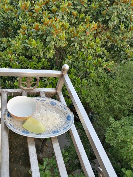 程女士告诉记者,10多年前她搬到这个小区来住后,发现小区的绿化很好,小区内时常可以看到鸟儿飞来飞去。有一天,她吃完饭收拾饭桌过程中,突然看到有小鸟在自家窗前飞舞,她就在想,一些剩下的米饭倒了怪可惜的,不如放在窗外让鸟儿来吃。就这样,她第一次在窗台上喂起了小鸟。刚开始,鸟儿不敢过来吃,她就躲得远远地观察。终于,有了第一只鸟儿过来吃了,随后渐渐多了起来。就这样,程女士开始天天将剩饭用盘子装好放到窗外喂鸟。