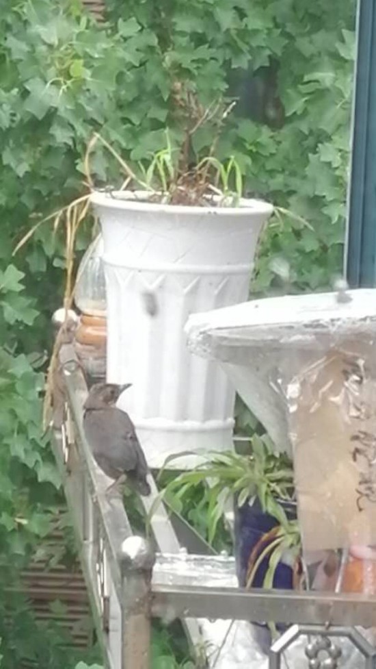窗台上孵化的乌鸫依依不舍飞走了