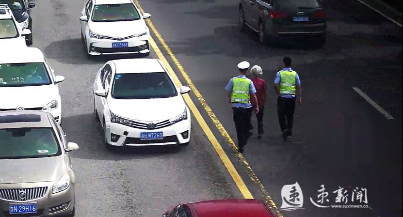两名辅警在车流中一路护送老人