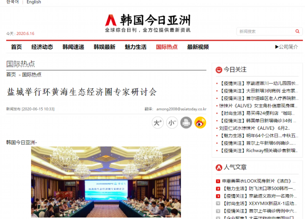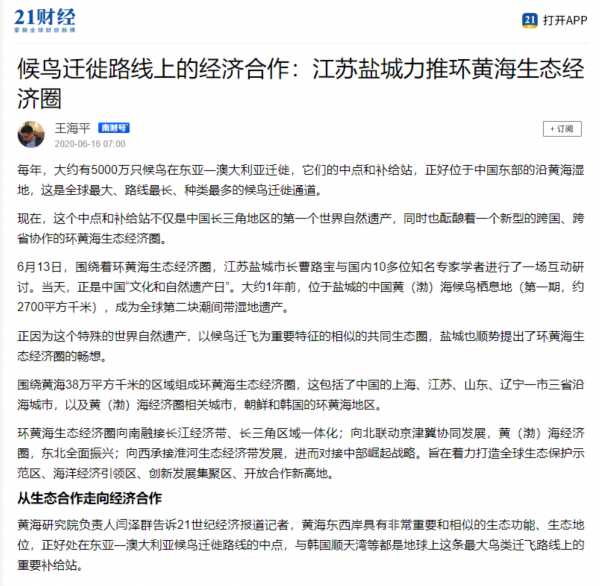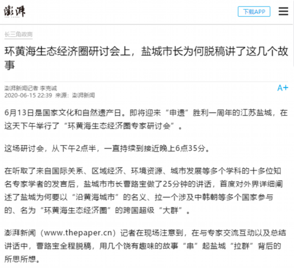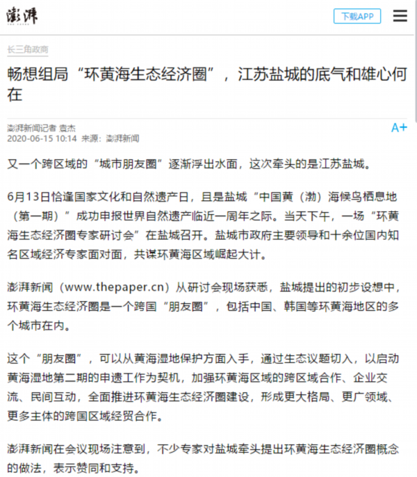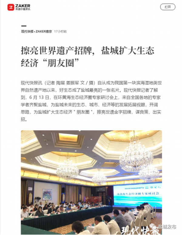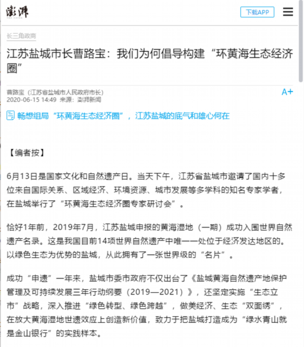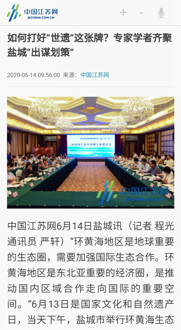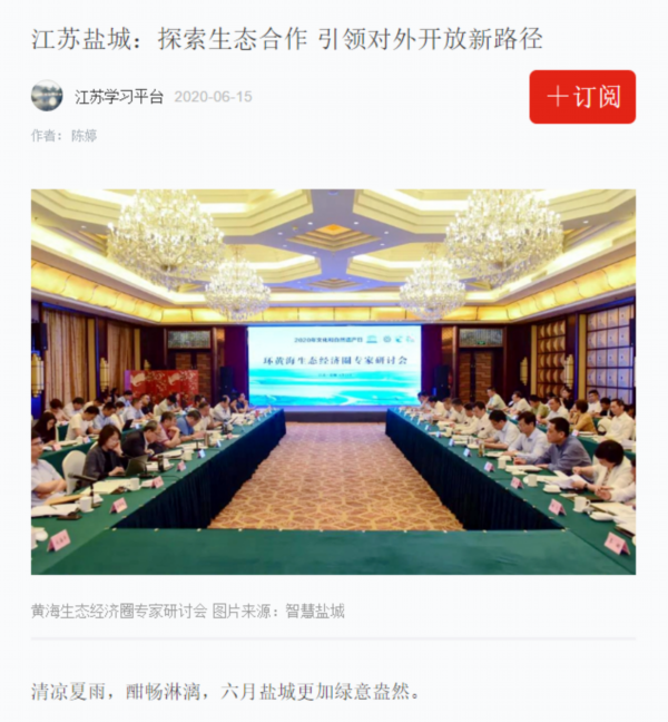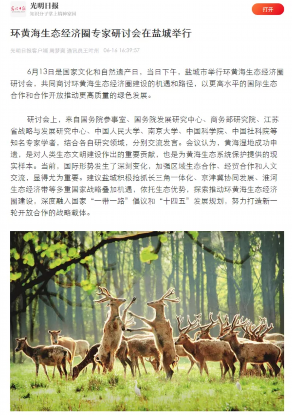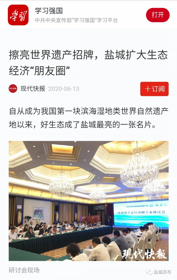 6月13日是国家文化和自然遗产日。当天下午,盐城市举行环黄海生态经济圈研讨会,以习近平生态文明思想为指导,共同商讨环黄海生态经济圈建设的机遇和路径,以更高水平的国际生态合作和合作开放推动更高质量的绿色发展。