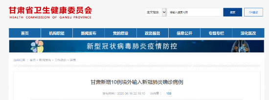 荔枝新闻讯 6月15日20时至6月16日20时,甘肃省本地无新增新冠肺炎确诊病例、疑似病例、无症状感染者和密切接触者。截至6月16日20时,甘肃省本地连续72天无新增确诊病例报告,连续80天无疑似病例报告,连续54天无无症状感染者,连续54天无密切接触者。境外输入疫情: 6月15日11时35分,253人乘坐MU7792次航班自沙特利雅得抵达兰州,通过入境检疫后均已全部隔离。6月15日20时至6月16日20时,甘肃新增10例境外输入确诊病例,均在省级定点医院隔离治疗,经专家会诊,3人为轻型,7人为普通型。另有2人在省级定点医院隔离留观。241人在集中隔离点隔离,进行进一步医学检测检查。
