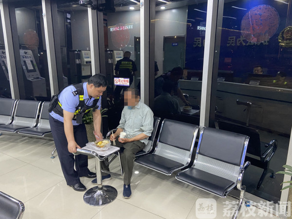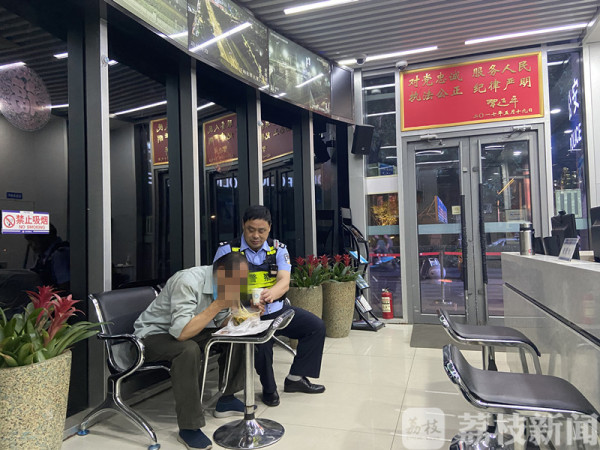 “警察同志,有吃的吗?”6月6日晚,一位略显狼狈的老人推开江东警务站的门,向民警寻求帮助。民警见状立即把老人扶到长椅上坐下,得知老人一天没有进食,又立即安排人买来面条给老人填肚子。担心老人噎着,民警还倒来一杯温水给老人缓缓,嘴里不停地劝说:“慢点吃慢点吃,不够再帮你买。”