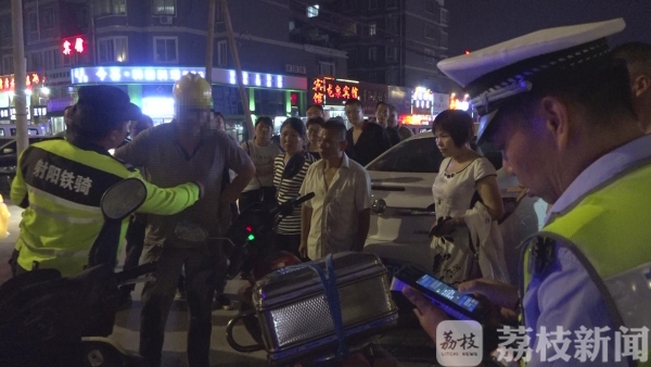 6月15日晚上,盐城射阳县公安局组织黄沙港交警中队、铁骑交警中队的20多名警力,在县城解放路与双拥路交汇路口西侧设置检查卡点,对由西向东行驶的机动车进行检查整治。晚上9点钟左右,一辆由西向东行驶的二轮摩托车进入到查缉区,看到前方有交警在检查,摩托车驾驶员不听执勤交警的指挥,一把方向将车子驶进右侧非机动车道,并加大油门意欲逃避检查,结果被前方执勤警力给拦截下来。