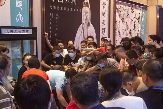 6月12日-6月14日,交流会现场攘来熙往、摩肩如云,来自全国各地的收藏爱好者齐聚一堂,人声鼎沸。主办方南京文物公司展柜从开展前2小时开始排队;上海文物商店等国营大店柜台前尤为拥挤,展会3天总成交额超1200万元。
