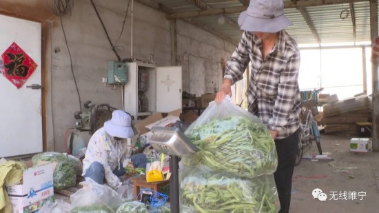 在睢河街道304县道南侧的一处蔬菜大棚,种植大户杜修成和家属正在分拣新摘下来的扁豆,准备装车发往百盛润家超市和县城东关菜市场。