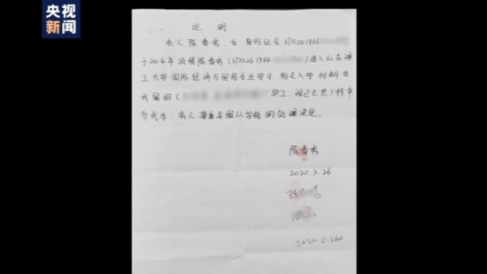 在调查中,顶替者陈某某给山东理工大学调查人员写了一份“说明”,并签名按了手印。