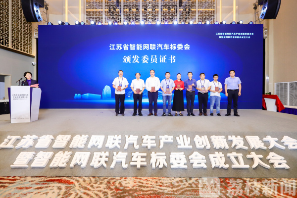 现场,江苏省智能网联汽车标准化技术委员会正式成立,并举行标委会授印章和委员证书颁发仪式。据介绍,第一届江苏省智能网联汽车标准化技术委员会由21名委员组成,省标委会的组建,将坚持产业发展与标准引领齐头并进,发挥标准的基础性和引导性作用,建立跨行业、跨领域、适应我国产业和应用发展需要的车联网产业标准体系。
