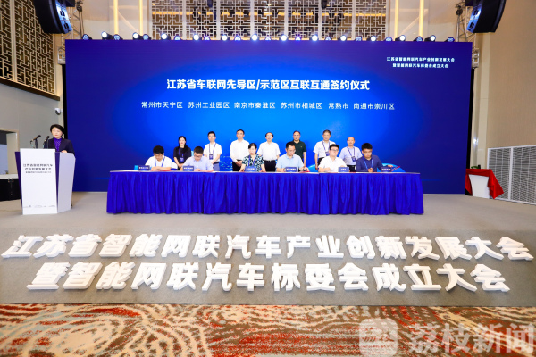 江苏省车联网先导区/示范区互联互通签约仪式也在现场举行。未来,南京市秦淮区、苏州市相城区、苏州工业园区、常熟市、常州市天宁区、南通市崇川区6家签约单位将加深合作,充分发挥江苏省在全国车联网产业发展的突出优势,推动全省车联网先导区/示范区城市联动与互联互通,实现车联网产业快速、集群、领先发展。