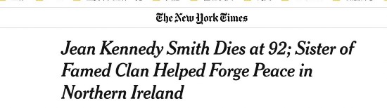 据美国《纽约时报》刚刚消息,美国前总统肯尼迪妹妹琼·肯尼迪·史密斯去世,享年92岁。