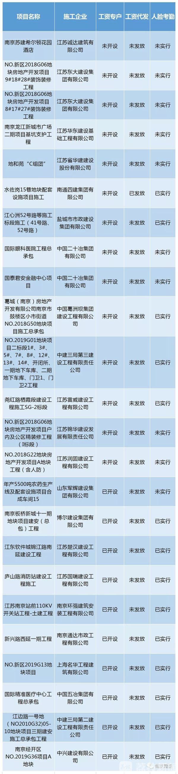 南京市督促建筑企业依法依规保障农民工工资及时足额发放,并对在建项目农民工工资专用账户、工资代发和现场考勤管理落实情况进行了随机抽查。今天(6月18日),南京市建委通报了一批未落实《保障农民工工资支付条例》的建筑企业,并限期整改。名单见图: