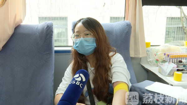 小杨是南京信息工程大学大一学生,今天是她第一次献血:“看着针挺粗的,还挺害怕的。”