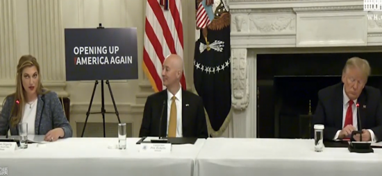 【环球网报道 见习记者 崔妍】当地时间18日,美国总统特朗普在白宫召开会议,与共和党州长及小企业代表共同讨论如何在新冠疫情期间重新开放经济(活动)。然而,尴尬的是,就在旁边的人发言时,特朗普却突然低下头玩起了手机,而这一场面也被摄像机拍了下来……