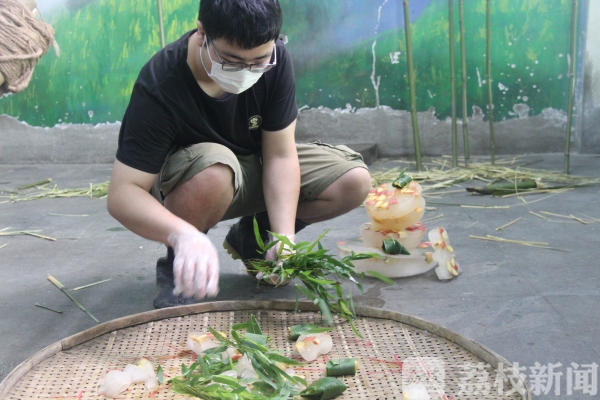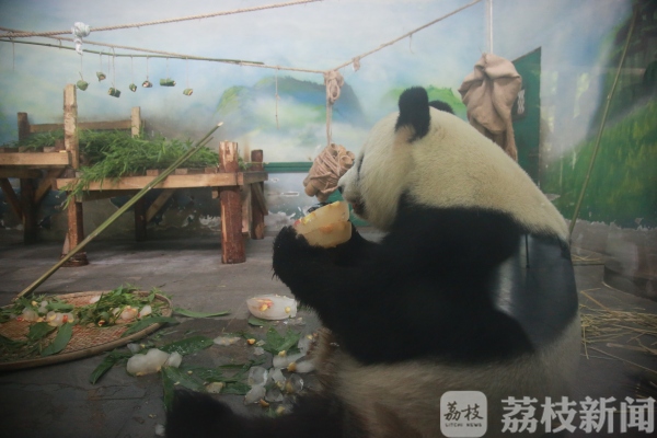 粽叶飘香,传统端午佳节即将来到。6月19日上午,动物园工作人员提前给可爱的“缘大”准备了特殊的竹制粽子宴。将采用竹编、竹篓进行食物国宝藏匿丰容,冰粽、窝头粽、竹叶粽、苹果粽以及悬挂的大粽子是其主餐。憨厚可爱的“缘大”看到这么多美食,立马变成一枚吃货,特别是冰粽成了它的最爱。工作人员对于陪伴十年的“缘大”很是不舍,希望“缘大”回去后能再回到它的“第二故乡”,再次回到太湖明珠无锡。