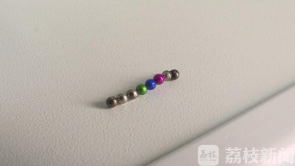 术中探查,医生发现两组磁力珠每组4个,分布在患儿胃部以及横结肠,磁珠彼此吸引。王晓敏医生介绍:“胃壁和横结肠的肠壁都吸附在一起,胃已经基本将要穿孔,就只剩一层膜在那地方,横结肠比较厚,还没有出现穿孔的迹象,我们就从胃要穿孔的位置,切了一个小口,把胃里面的4个磁力珠取出,然后再在横结肠上面切了一个小口,把横结肠里面的4个磁力珠都拿了出来, 磁力珠的吸附力还是很强的。 ”