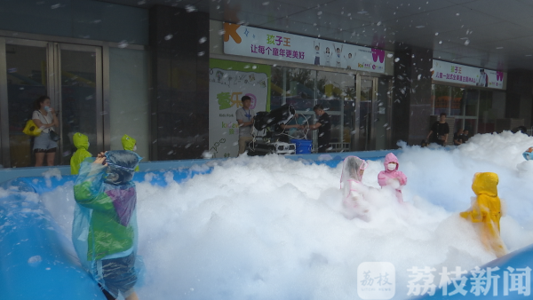 旁边这组参加泡泡趴的小朋友们,身穿五彩雨衣,沐浴在绵密洁白的泡沫里,快乐得仿佛在云朵里穿行。“增加一些见识吧,让她以后在像这样的活动中,在人群中她不怯场、不害怕。”一位家长说道。