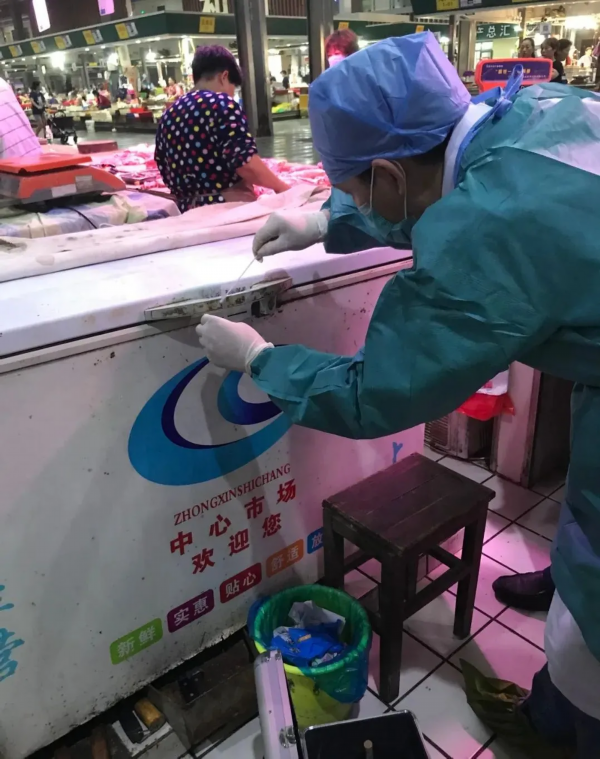 南通市疾控中心工作人员在南通农副产品物流中心采样