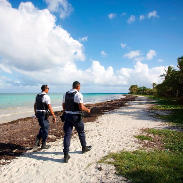 警察巡视被关闭的法属瓜德罗普岛屿海滩(图源:Getty)