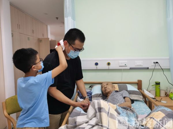 王奎娟告诉记者,除了居家防疫那段时间,吴耀宇每个星期来一次外,其余的日子每天都会准时出现在父亲的病床前,风雨无阻,算下来已经坚持了430多天。不过,82岁的吴名煌由于此前得过脑梗,加上轻度的失智,很多的事情都不记得了。
