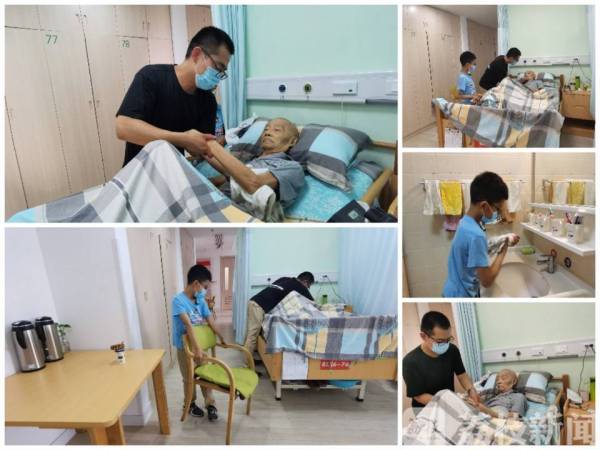 扬州某护养中心工作人员 王奎娟说:“ 每一天都来,有的时候是上午一趟,下午还要来,就是这样的一套,他都会做一遍,哪怕我们,因为我们给爷爷翻身时30分钟到40分钟翻一次,但是他来了正常的都会两个小时左右,他会先来先给他拍背,给他洗呀,给他弄呀,给他喂东西吃,然后走的时候还会再拍一遍,再翻一个身,他是我见过的最孝顺的。”