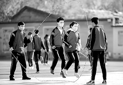 呼和浩特市第二十七中学通过开展花样跳绳等特色体育项目,激发学生对体育活动的兴趣,积极参与锻炼,增强身体素质。丁根厚摄/光明图片