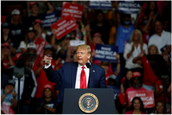 新冠疫情后的首场竞选集会,为了证明自己“很健康”,美国总统特朗普在会上的这个操作有点……他又是单手持杯喝水,又是在台上亲自示范自己在西点军校是如何以“小碎步”走下斜坡的,引起台下支持者一片哄笑。