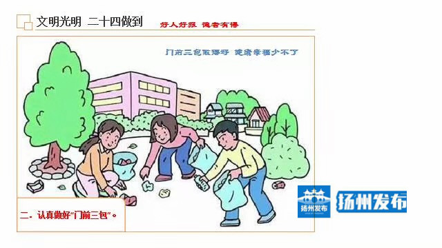 补充修改的“文明光明二十四做到”中,就加入了“门前三包”内容,目的是提升村民认识,号召村民共同行动,将做好“门前三包”作为提升村居环境一项重要的措施,倡导“户户参与、人人动手”。