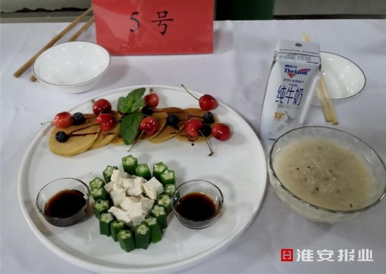 6月20日下午,淮安首届“学生营养早餐达人大赛”决赛在江苏省食品药品职业技术学院烹饪学院举行。来自各县区的选手们施展“八仙过海”之能,现场制作出一道道色香味俱全、令人垂涎欲滴的早餐佳肴。