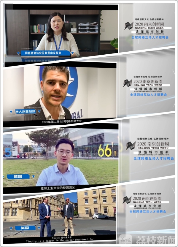 由南京市人力资源和社会保障局主办,南京市人才服务中心和江苏领航集团承办的“2020南京创新周—全球网络互动人才招聘会”今天(6月21日)举办。