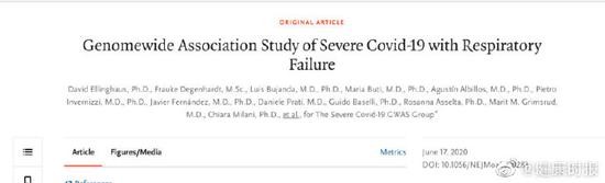 健康时报记者检索发现,为研究患者自身的遗传因素是否对病情轻重有影响,世界各国科学家已联合开展“Covid-19宿主遗传学计划”(COVID-19 Host Genetics Initiative),目前全球有138个注册项目,美国国立卫生研究院(NIH)的百万人精准医学项目“我们所有人”(All of Us)也加入了寻找Covid-19遗传易感性的行动。