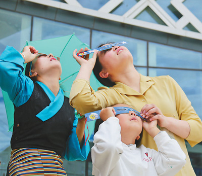 6月21日,拉萨市民在西藏自然科学博物馆观看日环食。本报记者 鲜 敢摄