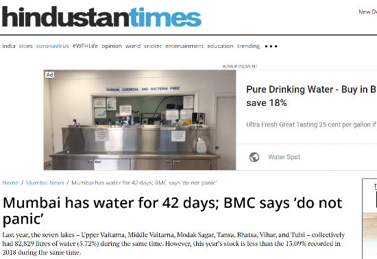 报道称,今年,这些湖泊集水区所在地的降雨量很少,即使进入季风季节已经将近一个月,目前的储水量也没有相应增加。据报道,当地政府每天供应37.5亿升水,但孟买全市对水的需求实际为42亿升。