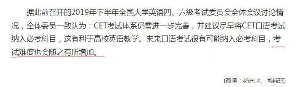 2019年下半年全国大学英语四六级考试全体会议上,委员又一致同意将口语纳入必考科目。大学英语四六级考试会越来越难,成为不少大学生的共识。