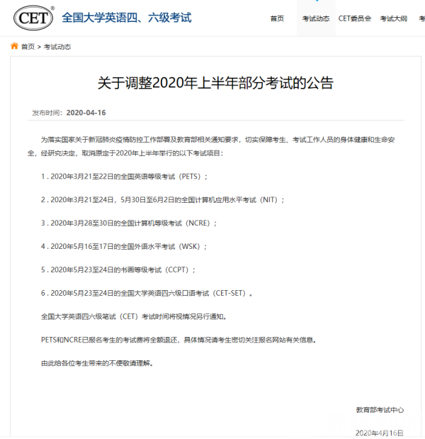 2020年大学英语四六级考试难吗?根据中国教育考试网的通知,原定于2020年6月13日举行的全国大学英语四六级考试延期并分两次举行,考试日期分别为7月11日和9月19日。今年4月19日,中国教育考试网发布了关于调整2020年上半年部分考试的公告,明确取消原定于2020年上半年举行的四六级口试考试项目,这让不少考生松了口气。专家表示,考试大纲不变,口语暂时不考,难度不会增加。