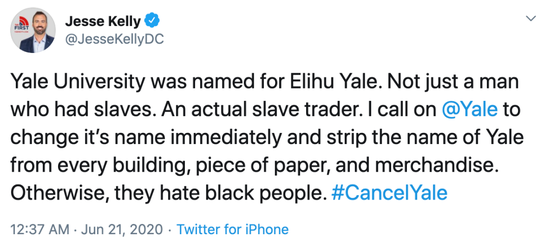 反正,按照Kelly的说法,如果耶鲁不更名,那每个耶鲁大学的毕业生,都要公开道歉,否则都应该被剥夺工作。
