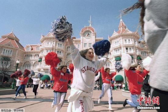 资料图:在巴黎迪士尼乐园里表演的拉拉队少女。